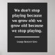 Quote by George Bernard Shaw. "We don't stop playing because we grow old; we grow old because we stop playing."