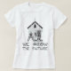 An image of two funny robots in front of a digital house with full USB support, two DIMM modules roof, and information processing activity. Stylised text "We Grow The Future". Funny and unique-shirt for anyone. Do not forget to choose the size, type, colour, and gender of the apparel. You can also transfer this design to another product, in particular: tote bag, trucker hat, apron, button, keychain, reusable grocery bag. Just choose the product from the scrollable line under the heading "Transfer design to a product". Do not hesitate to buy a beautiful tee, enjoy, and be happy!