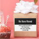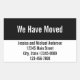 The top portion of this moving announcement sticker is black. Its white display text reads: We Have Moved. At the bottom, there's black display text for your name, address, and phone number.
