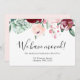 'We have moved', elegant watercolour burgundy and pink floral announcement flat card. Let your friends and family know you have finally completed on your purchase and where they can find you. The card can be customised with the inclusion of your family name and new address. The back of the card bears the message 'we hope to see you soon' and you are welcome to keep the design text as-is, edit or delete. A new home equals new beginnings and new memories!