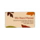 Orange, brown, dark red, and green fall leaves are on this moving announcement label. We Have Moved is above three lines of dark brown text. You can edit the text to show the correct name(s) and your new address.