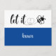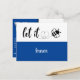 Greet serenity and amusement, with our captivating split-colour, change of address postcard featuring a royal blue and white design. The upper half in crisp white carries the message "let it ..." accompanied by a charming bee illustration, completing the iconic phrase "let it be." Below, in regal royal blue, elegant white script spells out "known," evoking a sense of important proclamation!.