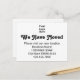This moving announcement postcard has a black text you can customise. This white postcard currently says We Have Moved Please Visit Our New Location. Additional lines of text can be customised for your business name, new address, and phone number. You can replace the display image with your company logo.