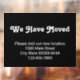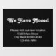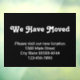 This moving announcement sign has a white text you can customise. This black sign currently says We Have Moved Please Visit Our New Location. Additional lines of text can be customised for your new address and phone number.