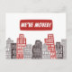 Cartoon style pattern with red and black retro buildings for a very exclusive new address announcement.