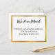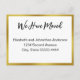 This moving announcement says "We Have Moved" in a cursive, scribble-style script. We Have Moved is on the top line. The other lines are not in script and are for your name(s) and new address. The card is white with black text. The faux gold border is not made of foil. All text can be edited or deleted.