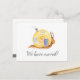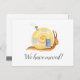 We have moved new house announcement postcards. Let friends and family know you have moved home with these cute whimsy snail moving house art postcards. Personalise with your own name and new address details. Cute snail with a home to move watercolor art by Sarah Trett for www.mylittleeden.com on zazzle.