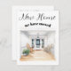 Cute new home announcement with bright white patio and plants on the front. The reverse of this new home announcement allows for customization of new address with your signature line.