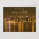 We have moved to San Diego Moving Announcement Postcard: This is a photograph of the San Diego skyline taken at night in October 2020. The skyscrapers' lights reflect in the bay's water, and the light of the full moon that was rising at the time led to these dark and warm colours. This photo is perfect to announce moves to San Diego, California, and is available on products that make the perfect San Diego souvenir for yourself, or as a gift.
