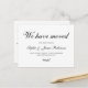 Simple Minimal „We've Moved” Whimsical Calligraphy Script New Home Moving Announcement Postcard. Let your friends and family know your new address using these minimalist elegant pretty hand lettered font script typography „We Have Moved” text on front and the back side „Please keep in touch!” text in black and white. Easy to customise with your own details.