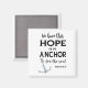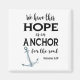 In black script it reads, "We have this hope as an anchor for the soul." Hebrews 6:19. There is also a silver anchor.