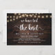 We have tied the knot, Wedding Elopement Announcement / Invitation card, in Rustic farm Wood, String Lights design. This is perfect for your wedding reception and post-wedding celebration party. Add your details in matching font / lettering.
