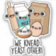 We Knead Yeast Other Funny Baking Puns features a cute cute bunch of baking pals milk, flour, yeast, egg and rolling pin declaring that they need each other . Perfect Puns gift for family and friends who love cute baking puns.