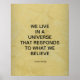 We live in a universe that responds to what we believe. This spiritual quote poster is based on the teachings of the Law Of Attraction and Quantum Physics. Quote and artwork by Corbin Henry.