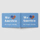 Celebrate your forever love for America with this patriotic heart-shaped American flag design. Ready to personalise with family name.