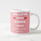We Love You Bubbe Personalised Pink/White + Hearts Giant Coffee Mug, created by Artist RjFxx * All rights reserved. #ZazzleMade