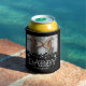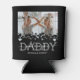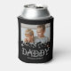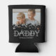 Modern can cooler for dad featuring a 2 photos of your children, a modern black heart design, the saying "we love you daddy", and the kids names.