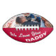 Personalised red, white & black fathers day football gift featuring a 3 family photos, the text "we love you daddy", and the kids names.