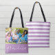 Custom 2-sided reversible tote bags personalised with your photos and text. Add a special photo with your mother or grandmother for Mother's Day. Text reads "We Love You Grandma" or customise it with your own message. Back side has a chic stripe pattern or use the space for additional photos and text if needed. Use the design tools to add more photos, change the background colour and edit the text fonts and colours to create a unique one of a kind Mother's Day photo tote bag for mum or grandma.