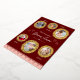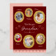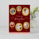 Add a special touch to Grandma's day with this personalised photo design notecard with gold foil. Greeting card has six image spaces in antique gold frames. There are also five text fields for names or other text. The centre text says "We love you Grandma" and is also editable. The background is a pretty red with accents of pink. There are also several hearts. The back has space for additional text.