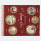 Add a custom touch to Grandma's next warm and cosy fleece blanket with this personalised photo design. Blanket has six image spaces in antique gold frames. There are also five text fields for names or other text. The centre text says "We love you Grandma" and is also editable. The background is a pretty red with accents of pink. There are also several hearts.