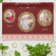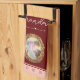 Add a custom touch to Grandma's home kitchen with this personalised photo design. Kitchen towel has six image spaces in antique gold frames. There are also five text fields for names or other text. The centre text says "We love you Grandma" and is also editable. The background is a pretty red with accents of pink. There are also several hearts.