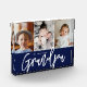 Using beautiful and modern Typography for the words "We love you Grandpa", elegant script and classic font together with san serif type. Customize this photo block with the grandkids' photos for the grandfather to treasure and cherish Simple, with 3 photo spots, thoughtfully laid-out. A wonderful gift for granddad. Blue accent color block.
