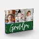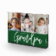Using beautiful and modern Typography for the words "We love you Grandpa", elegant script and classic font together with san serif type. Customize this photo block with the grandkids' photos for the grandfather to treasure and cherish Simple, with 3 photo spots, thoughtfully laid-out. A wonderful gift for granddad. Green accent color block.