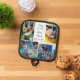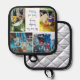 This cute, custom grandkids photo pot holder for a grandfather features a modern layout of 4 grandchildren photos on a white background with blue typography reading We Love You Grandpa. This beautiful grandchildren kitchen gift features your own photograph collage surrounding your personalised message and names.