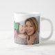 Modern "we love you mom" bright colors graphic with 2 photos and custom text giant coffee mug.