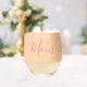 Modern We Love You Mum Happy Mothers Day Custom Names Stemless Wine Glass. Minimalist, sweet, pretty and simple typography. Text are "We love you", "Mum", and "Your Names". All the text can easily be changed to your own lovely messages. Order this cute wine glass today to express your love and thanks to your wife, mum, grandma, aunt, and the mothers in your life!