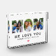 Create a stylish and memorable gift for Mum this Mother's Day or any day! This custom tabletop photo block features a collage of three favourite family pictures of the kids designed as a modern and bold sans serif typography design. Personalise the custom text with the names of the children and modify the black text, pink heart, and white background if you would like different colours to coordinate with your home decor.