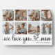 Cute mother's day photo plaque featuring an 8 photo collage template of the kids, the saying 'we love you mum' in a elegant script floral font, and the childrens names.