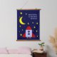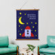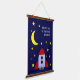 This sweet wood topped hanging tapestry features a rocket ship ready to head to the moon, along with the customisable wording "We love you to the moon and back" in a white casual font on a navy blue background. This is perfect for decorating a baby's or child's bedroom. It would also make a great baby shower gift.