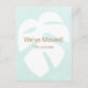 Modern botanical design of large white monstera leaf on aqua blue linen background image.