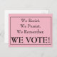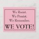 We Resist. We Persist. We Remember. We Vote! As shown in a black frame on the standard pink background. Customisable.