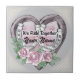 We Ride Together Heart tile, apparel, t-shirts, gifts by ArtMuvz Illustration. Features a watercolor heart with roses and two horseshoes tied together with ribbon. To personalise add your name or add text instead. Customise this tile to make it uniquely yours or to give as a personalised gift