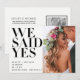 This chic black and white wedding announcement is a great way to let your friends and family know that you have eloped, had a secret ceremony, or private wedding, and wish to celebrate with them! The front of the card is designed to showcase your favourite vertical orientation photo, with the words 'We Said Yes' at the left in a black, timeless and elegant fashion magazine typography. Your names, wedding date and location appear at the bottom left in a modern, fashion sans serif font, and your vertical wedding photo on the right. The back of the card allows you to type in a personal wedding information, as well as including the reception invitation information, and features a black and white framed vertical/portrait orientation photo. This is a template design, and is very easy to customise to suit your needs. Thank you so much for supporting our small business, we really appreciate it!