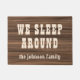 We sleep around rustic wood custom camping family doormat
