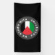 We Stand with Palestine flag with custom text black banner / sign.