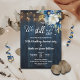 This Wedding Anniversary Invitation has an elegant script calligraphy completed by wonderful blue wood, garden string lights and white blue floral with gold glitter. You can personalize this Invitation with your Wedding Anniversary details.