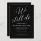 These simple, modern wedding anniversary.vow renewal invitations feature trendy black script typography that says "we still do", on a white background for a very stylish look.
