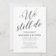 These simple, modern wedding anniversary.vow renewal invitations feature trendy black script typography that says "we still do", on a white background for a very stylish look.