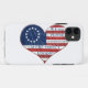 Colourful red, white and blue original 13 state Betsy Ross American flag in the shape of a heart, with the first line from the Preamble of the United States of America Constitution.