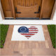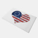 Colorful red, white and blue original 13 state Betsy Ross American flag in the shape of a heart, with the first line from the Preamble of the United States of America Constitution.