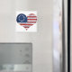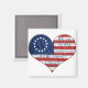 Colourful red, white and blue original 13 state Betsy Ross American flag in the shape of a heart, with the first line from the Preamble of the United States of America Constitution.