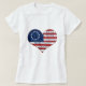 Colourful red, white and blue original 13 state American flag in the shape of a heart, with the first line from the Preamble of the United States of America Constitution.