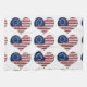 Colourful red, white and blue original 13 state Betsy Ross American flag in the shape of a heart, with the first line from the Preamble of the United States of America Constitution.