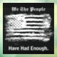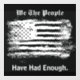 Make a statement with this "We The People" message on a window cling. This simple striking black and white design features a grunge art style image of the American flag with stylized text captioning "We The People Have Had Enough". Text can be edited.