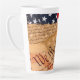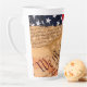 Begin or finish your Patriotic day with this durable latte mug featuring the Constitution of We the People along with the US flag in the background. Image colour may vary on different viewing screens.